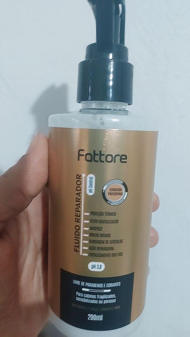 O Fattore Fluido Reparador é um tratamento intensivo desenvolvido para restaurar a saúde e a beleza dos fios danificados. Com textura leve e fórmula altamente nutritiva, ele age diretamente nas áreas fragilizadas da fibra capilar, promovendo reparação profunda e brilho imediato. Enriquecido com ativos reconstrutores, o fluido fortalece os cabelos, sela as cutículas e reduz o frizz, garantindo fios mais macios, protegidos e disciplinados. Ideal para uso diário ou como finalizador após processos químicos, ele forma uma barreira protetora contra agressões externas como calor, poluição e umidade. Indicado para todos os tipos de cabelo, o Fattore Fluido Reparador oferece resultado profissional com toque leve, sem pesar os fios.